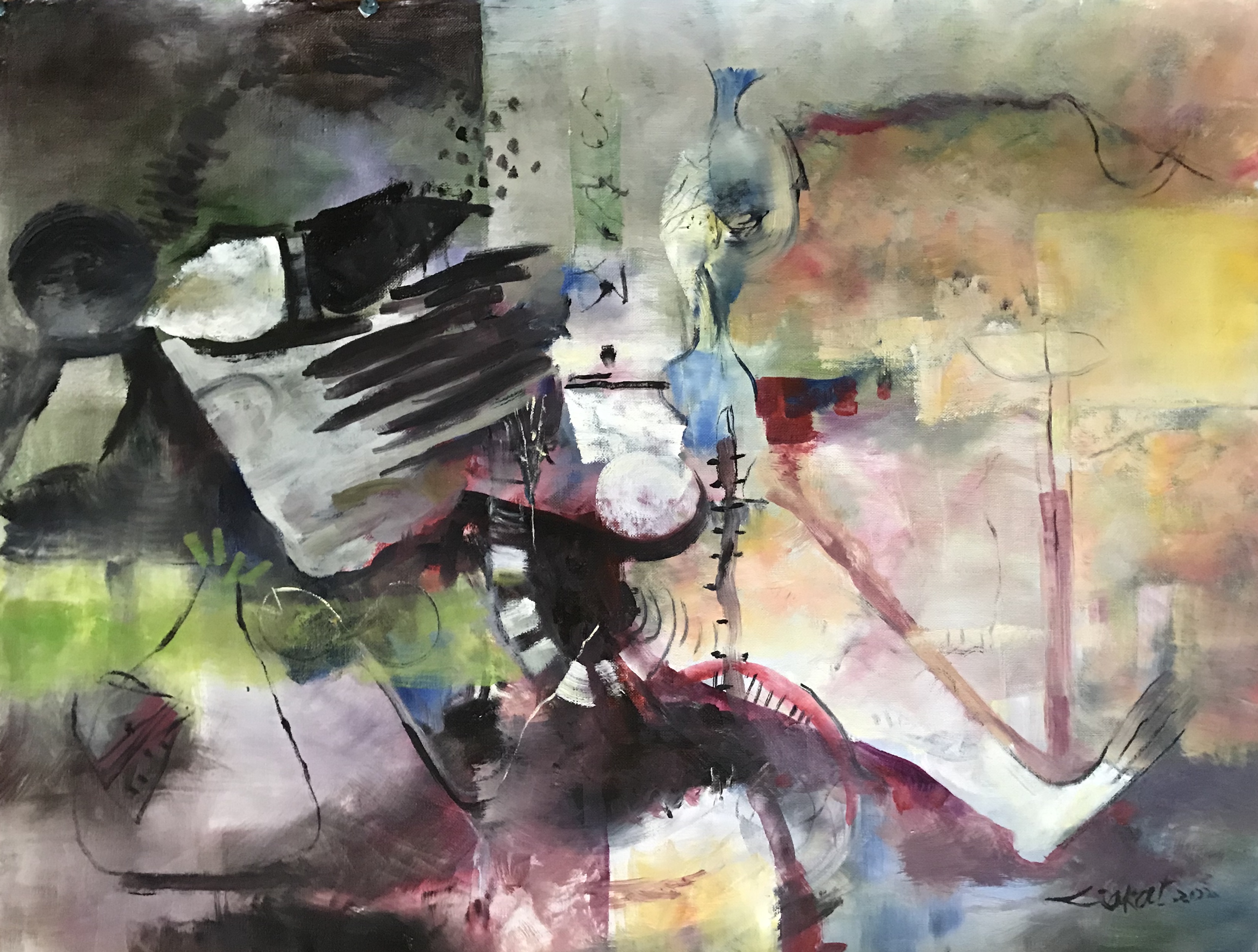 Imagination: It has been oil-colour after a hard experience in life strugle. (painted on paper 54 x 74 cm 8 glass fram) painted in Japan, 2016.