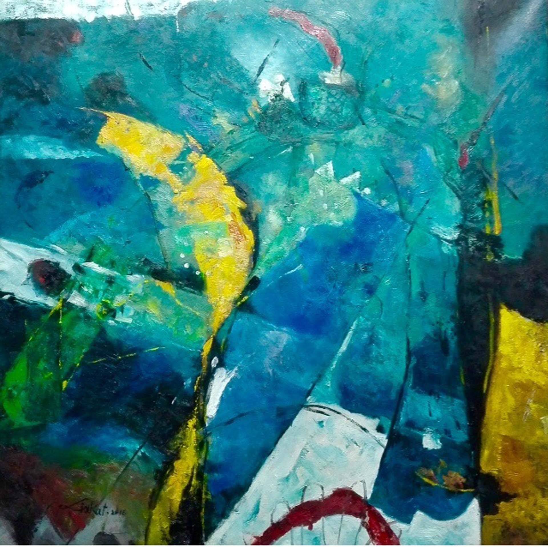 Imagination: It has been oil-colour after a hard experience in life strugle. (painted on paper 54 x 74 cm 8 glass fram) painted in Japan, 2016.