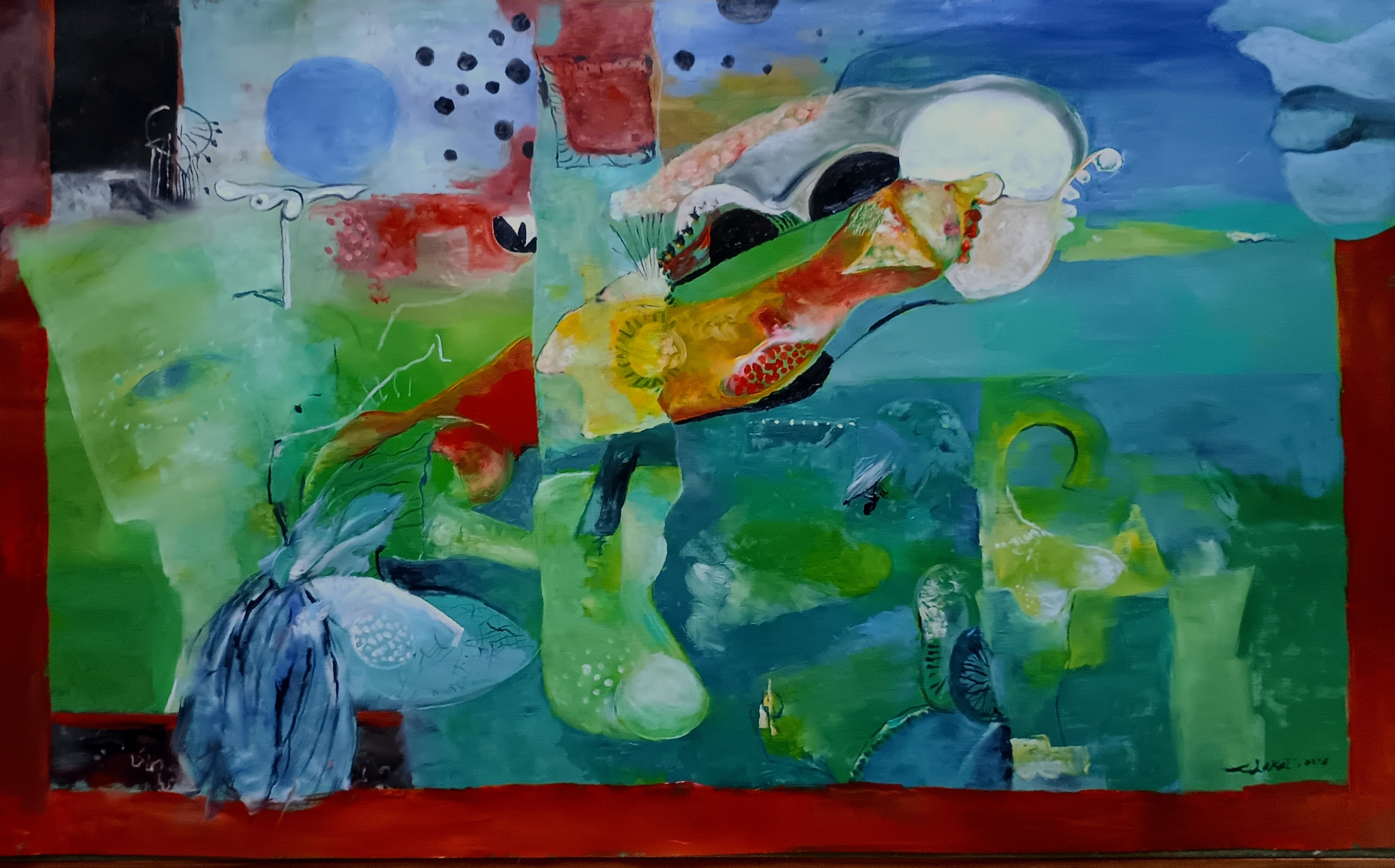 Imagination: It has been oil-colour after a hard experience in life strugle. (painted on paper 54 x 74 cm 8 glass fram) painted in Japan, 2016.